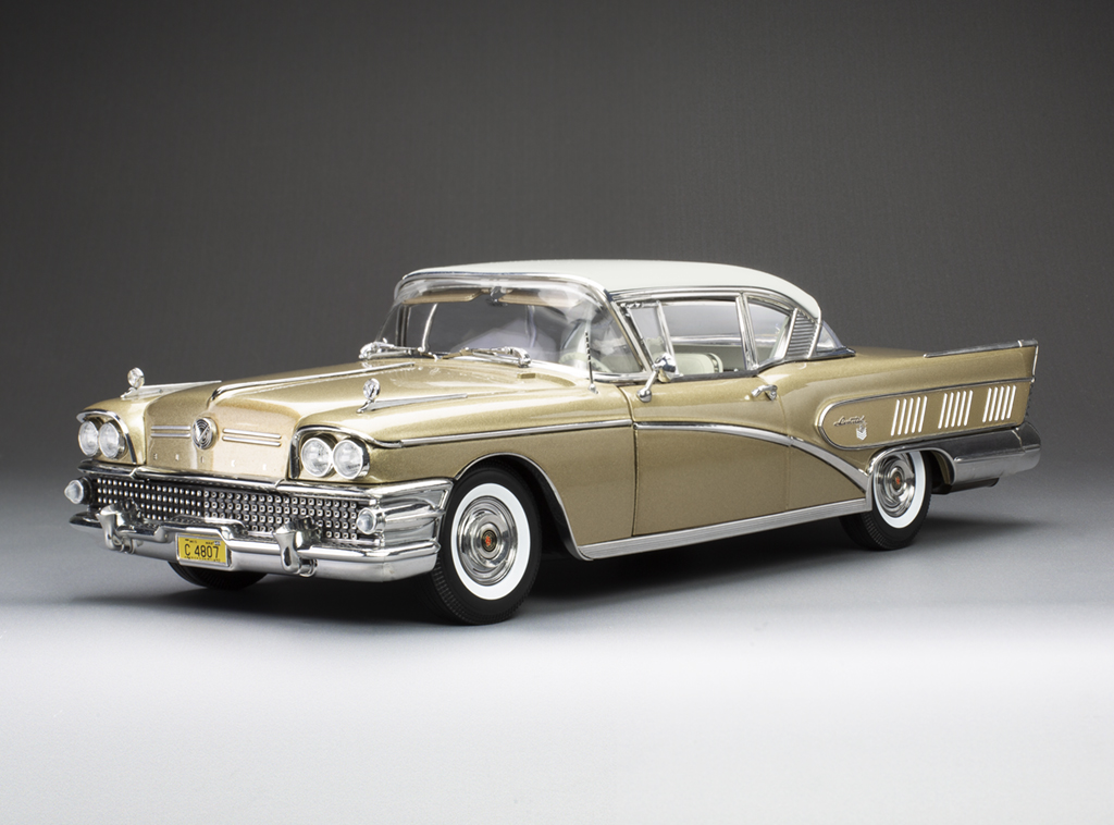 Miniatura Buick Limited Riviera Coupe 1958 1:18 Sunstar Platinum Dourado