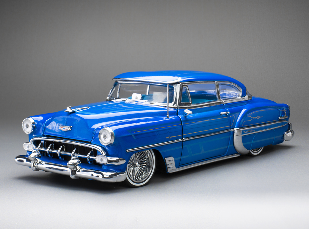 Miniatura Chevrolet Bel Air 1954 Hard Top Coupe Lowrider 1:18 Sunstar Azul