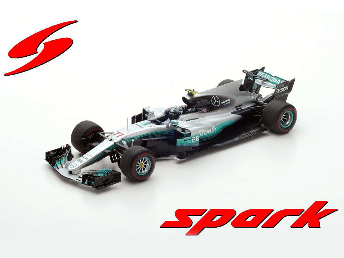 Miniatura Fórmula 1 Mercedes Benz AMG W08 3º Bahrain 2017 Bottas 1:18 Spark