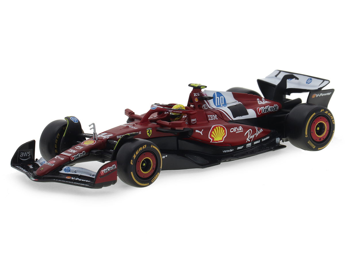 Miniatura Fórmula 1 Ferrari SF-25 2025 Lewis Hamilton 1:43 Bburago c/ Display e Piloto