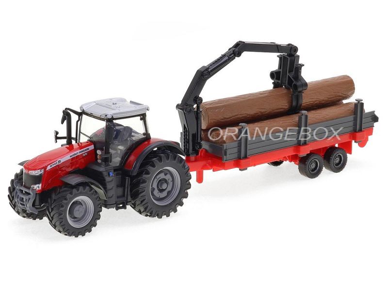 Miniatura Trator Massey Ferguson 8740S + Carreta Madeira Bburago