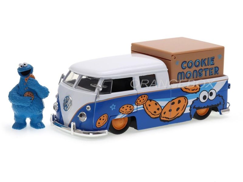 Miniatura Volkswagen Kombi Pick-Up Bus 1962 + Figura Cookie Monster (em metal) Jada Toys 1:24 c/ som