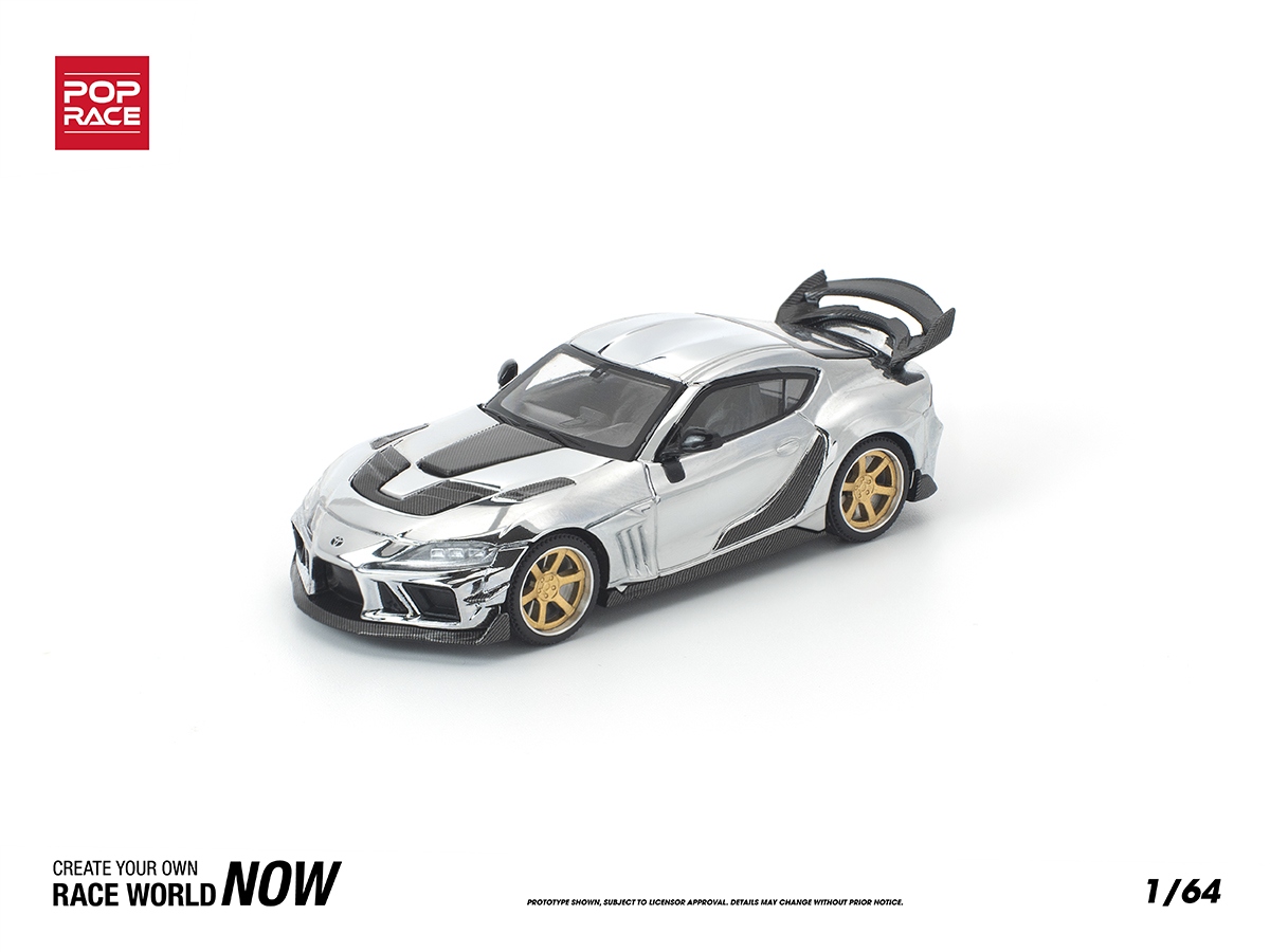 Miniatura Toyota Supra A90 Darwin Pro 66G Wide Body Kit 1:64 POP RACE Silver Chrome